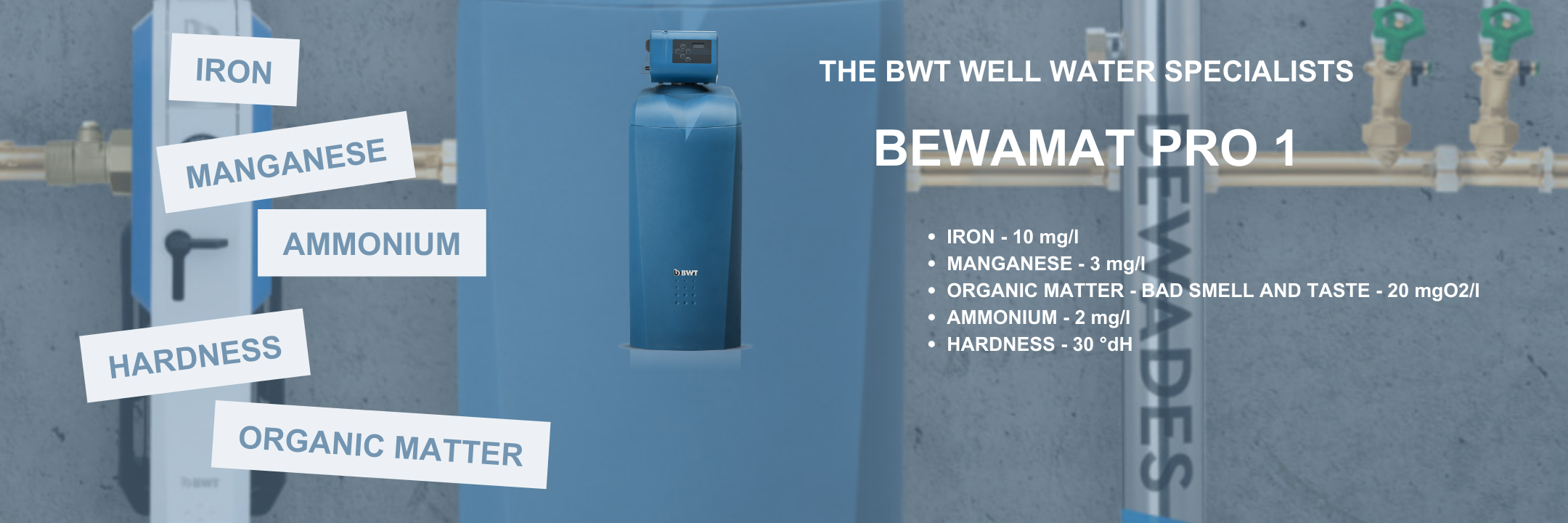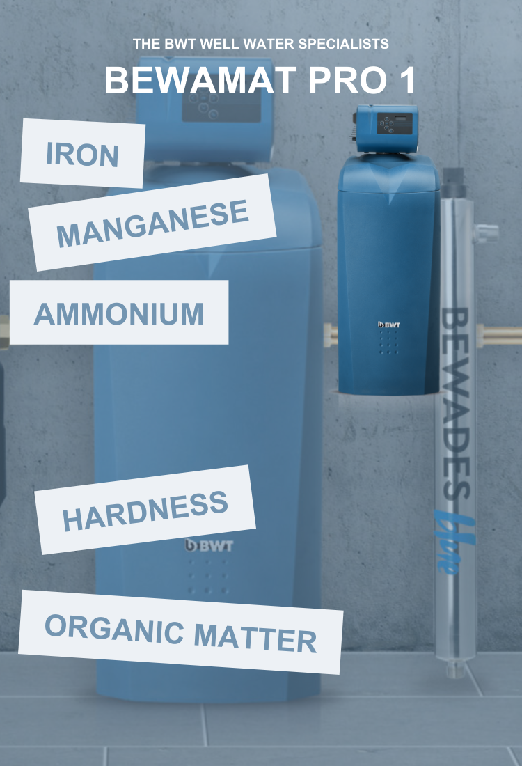 View detailsThe BWT well water specialist: Hardness 5.34 mmol/l; Iron 10 mg/l; Manganese 3 mg/l; Ammonium 2mg/l