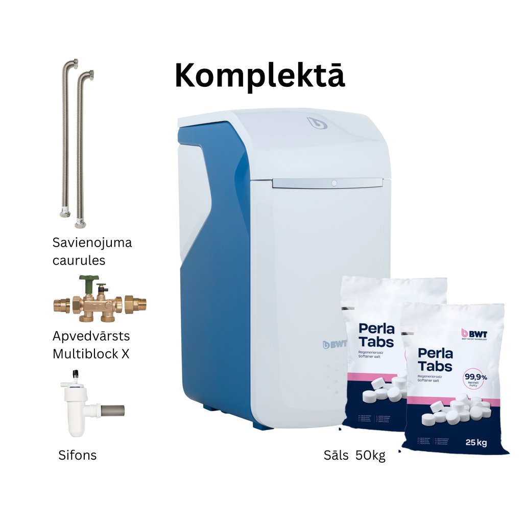 The BWT Perla Seta is a so-called duplex soft water system that works according to the ion exchange process. In this process, calcium and magnesium ions are removed from the water and replaced by sodium ions. The result: limescale-reduced, silky-smooth BWT pearl water. The softener columns are filled with organic ion exchange material (resin).